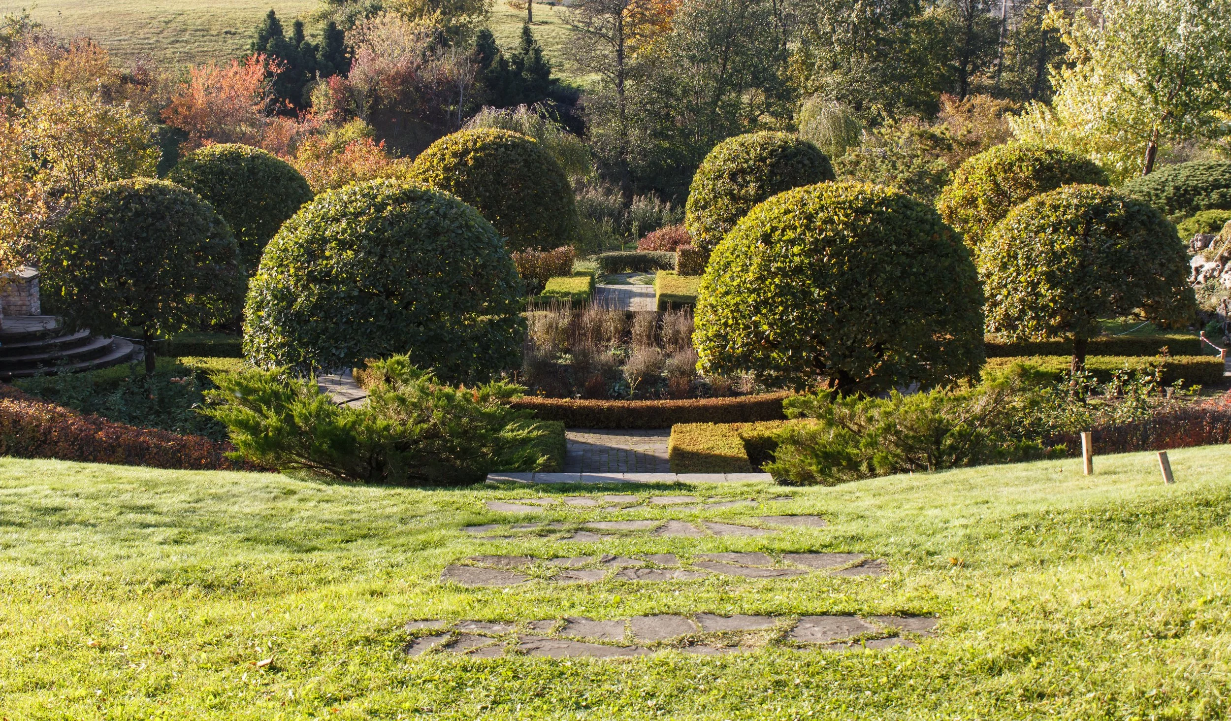 Strong sightlines and axial paths draw the eye toward distant features, such as a statue, a tree, or a view.