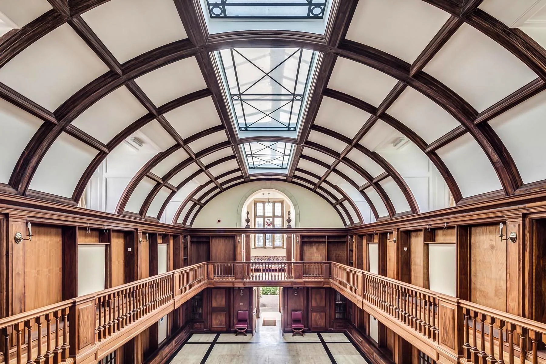 Reinstatement of a Grade II listed Library at Marsden Manor. The works included extensive restoration of the detailed timber bookcases, shelves and panelling that were removed or covered when the building was used as a squash court. The first floor gantry was reinstated and all the balustrades restored.